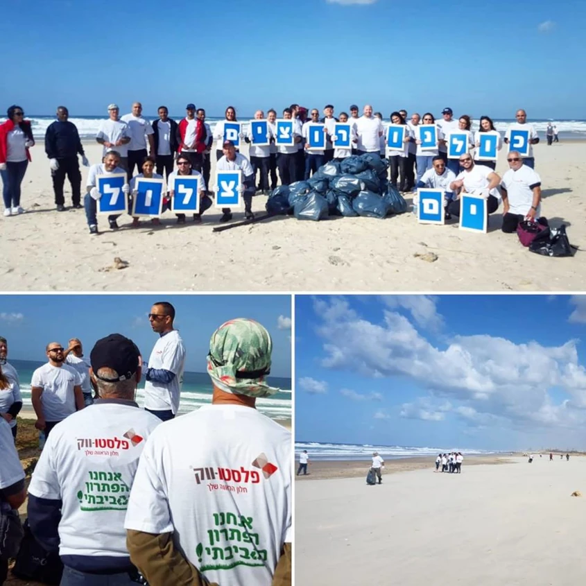 התמונה למעלה: פעילות סביבתית של עובדי פלסטו-ווק לאיסוף זבל בחוף פלמחים, בשיתוף עמותת צלול.